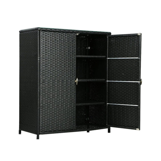 Outdoor Storage Cabinet 92cm Lockable | Weatherproof Cupboard Rattan Beige