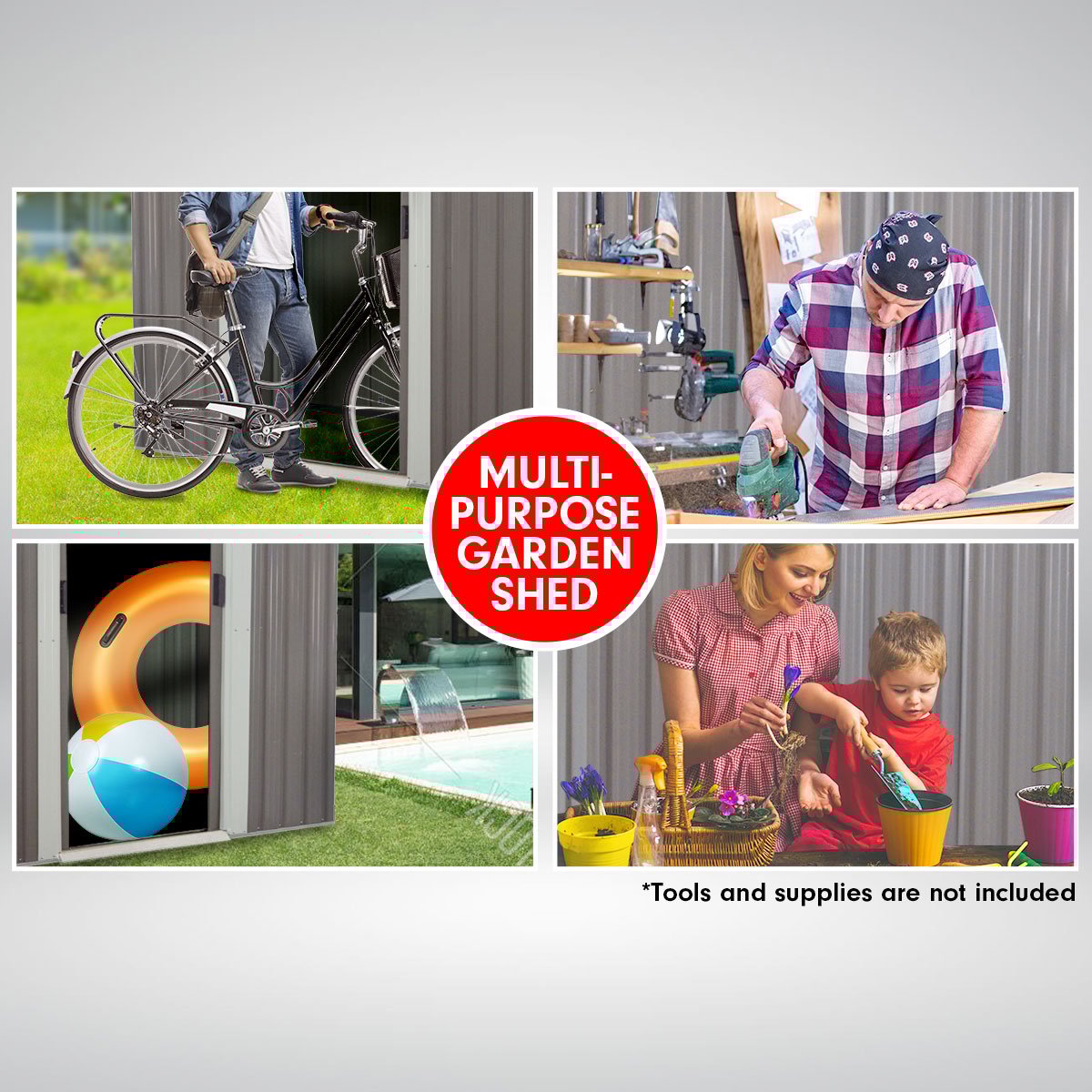 Perfectly sized for tighter spaces, it stores everything from garden tools and outdoor cushions to DIY gear and seasonal essentials. Crafted from galvanized steel and polypropylene, itโs made to resist rust, harsh Aussie weather, and years of use โ all while looking sharp in its modern grey finish.