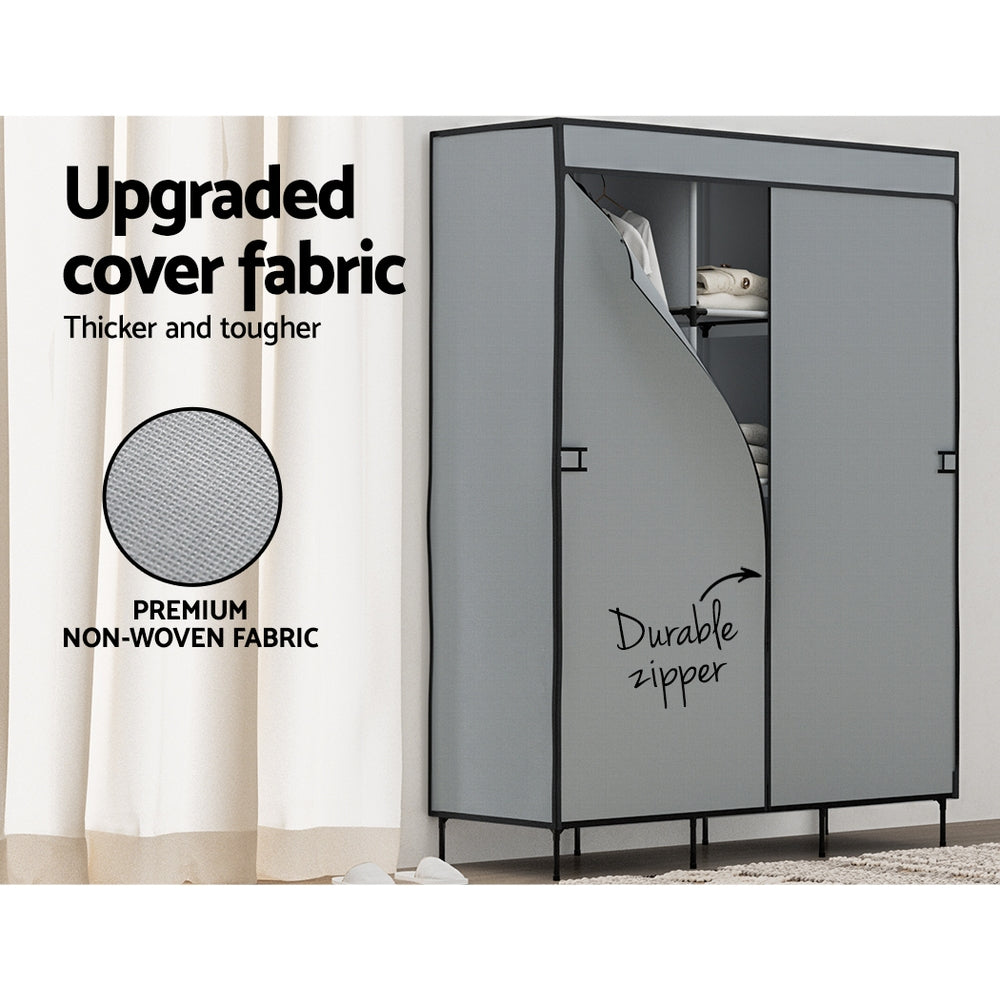 Surprising Storage Capacity Don't let the fabric fool you - this wardrobe holds as much as traditional timber wardrobes costing 5x more. Four hanging rods accommodate full-length dresses, suits, and everyday clothes, while adjustable shelves store folded items, shoes, and accessories.