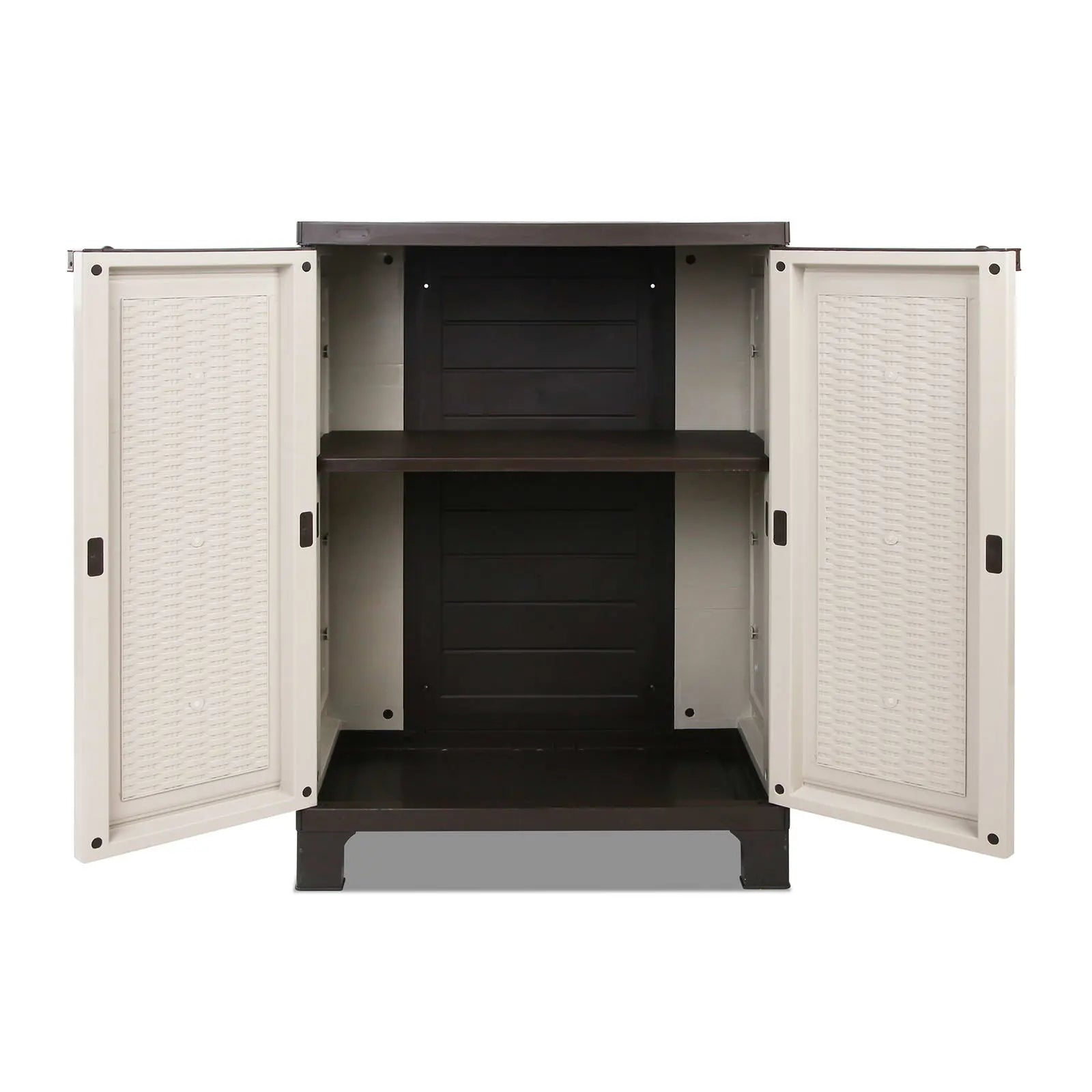- Clean rattan-look finish: Neutral beige colour and textured panels blend beautifully with outdoor furniture instead of screaming "storage cabinet"